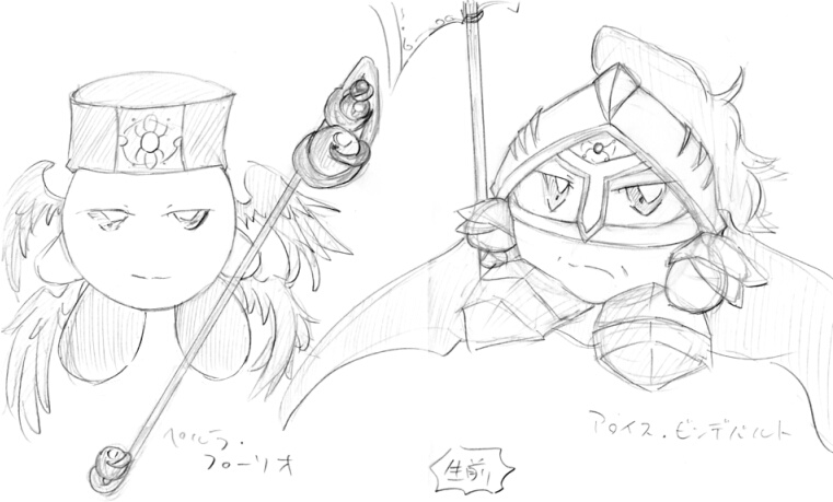 また、アロイスは生前の記憶を持っていますが、フローリオは魔法剣と合成させられたこともあり、その大半を忘れてしまっています。生真面目な性質であるアロイスにあれこれ聞き出し、その度にアロイスは呆れるのですが、彼の生前の記憶が幽かに顔を出すとき、アロイスもまた己の境遇を思い出し悲嘆に暮れる。